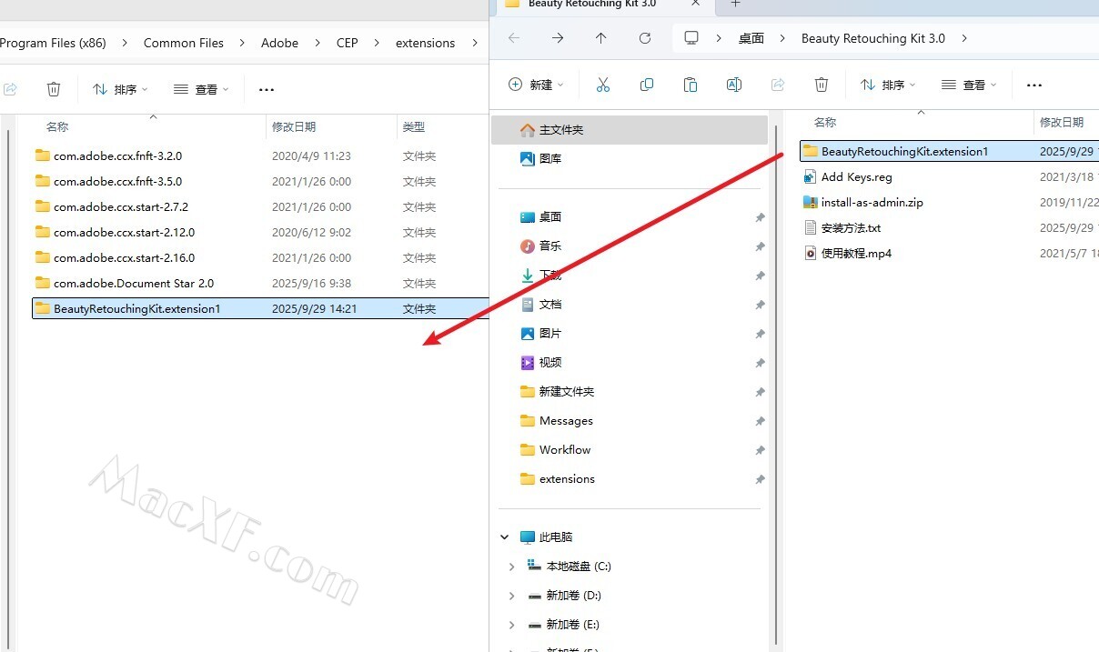 1复制Beauty Retouching Kit文件夹到如下位置: