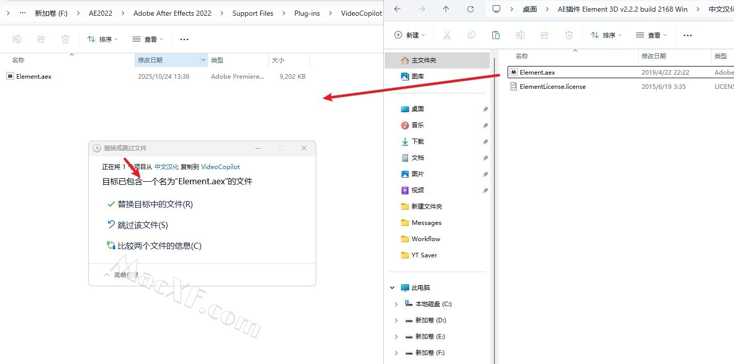 3复制补丁文件夹里面的Element.aex到AE安装目录下的Plug-ins\Videocopilot\替换掉原来的