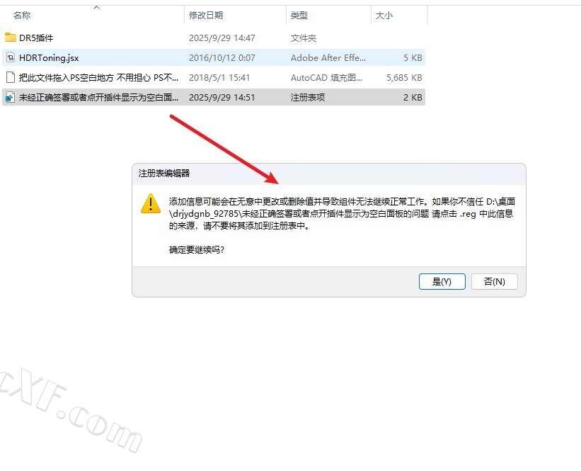 3双击运行"Adobe PS未签署运行该文件.reg",图二点击"是",图三"确定";