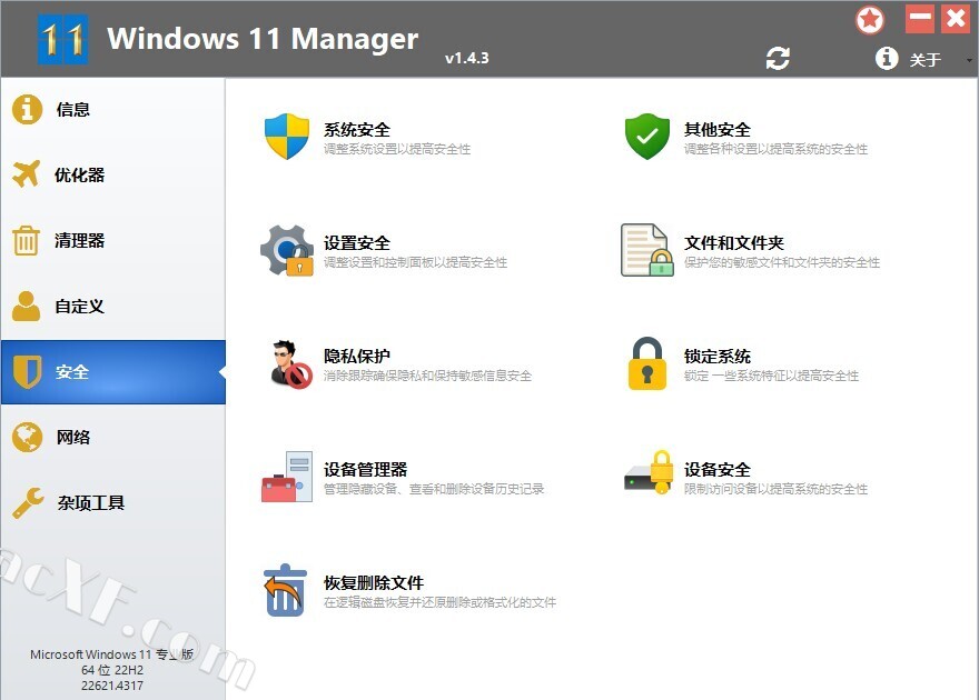 Windows 11 Manager功能于一身的系统优化软件,提供40多个实用程序来优化,调整,清理,加速和修复Windows 11,可以让系统运行速度更快,消除系统故障,提高稳定性和安全性,个性化Windows 11,满足您对系统优化调整的所有期望。