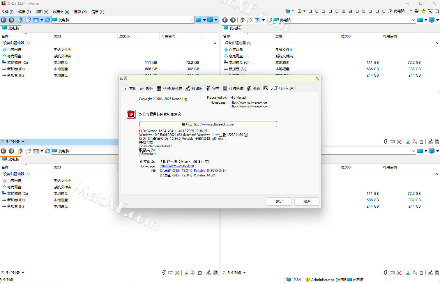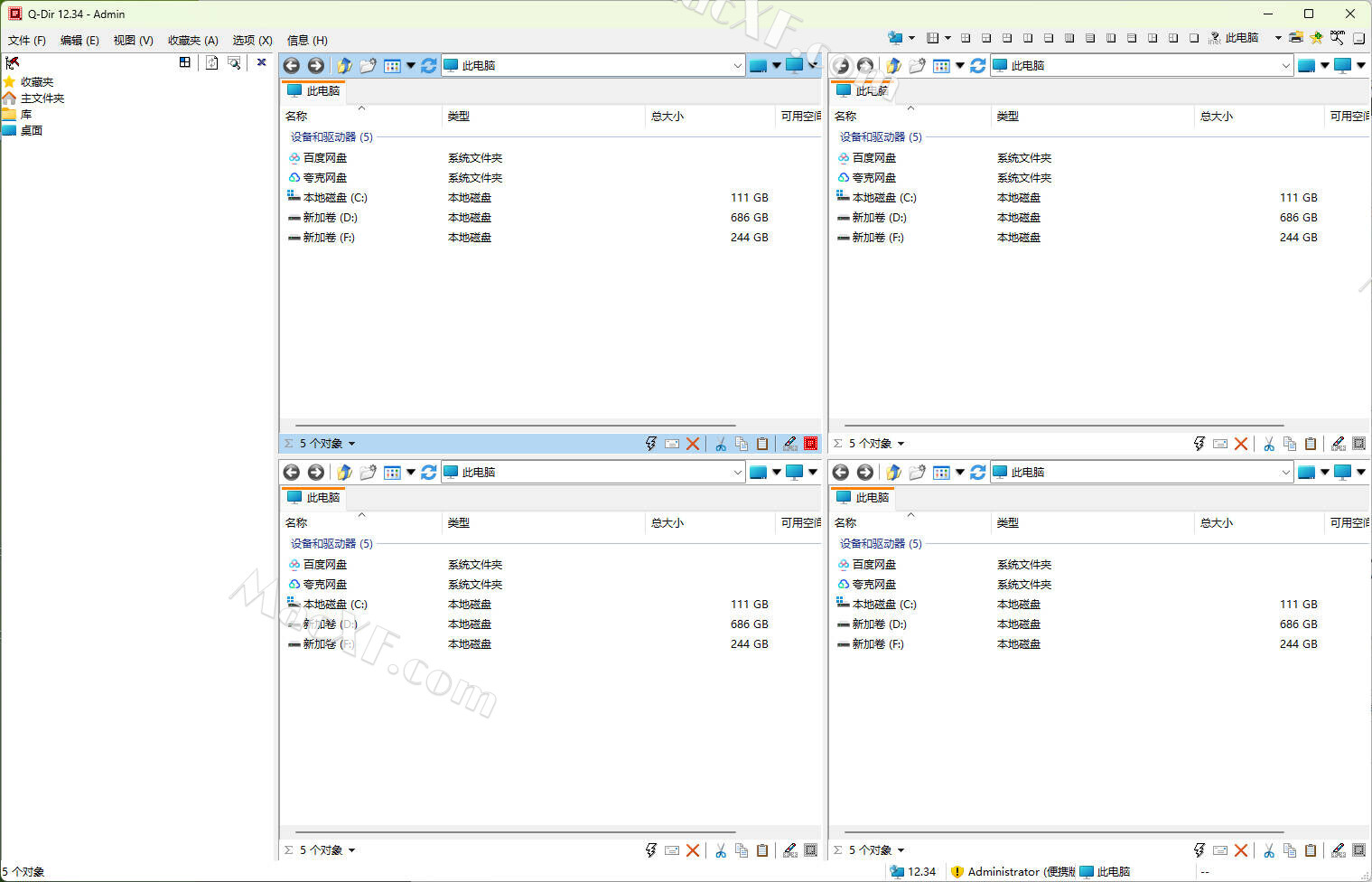 Q-Dir支持分屏操作,最多可以将四个不同的文件夹同时显示在一个窗口中。这使得您可以轻松地在不同的文件夹之间进行拖放操作或者复制粘贴文件。