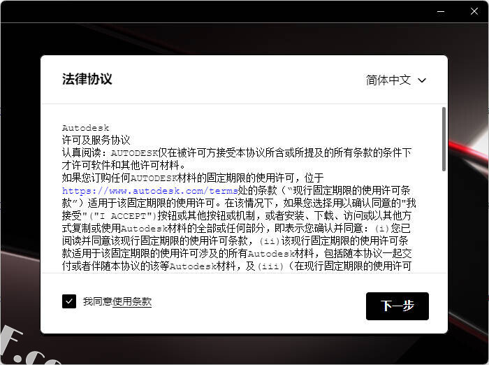 3右上角选择中文语言,左下角勾选我同意后点击下一步
