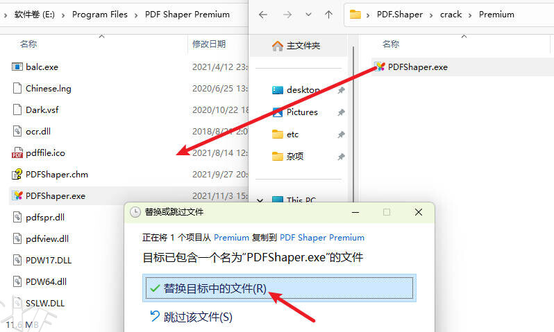 10安装完成,不运行软件,点击“Finish”,打开安装包中的“crack”文件夹,将里面的破解补丁复制到安装目录下,并进行替换即可完成破解;默认目录为C:\Program Files\PDF Shaper Professional