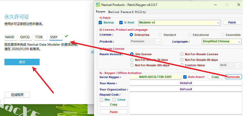 13注册机点击“Generate”,将生产的密钥复制到对应框中,点击"激活";