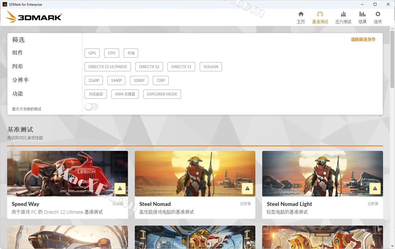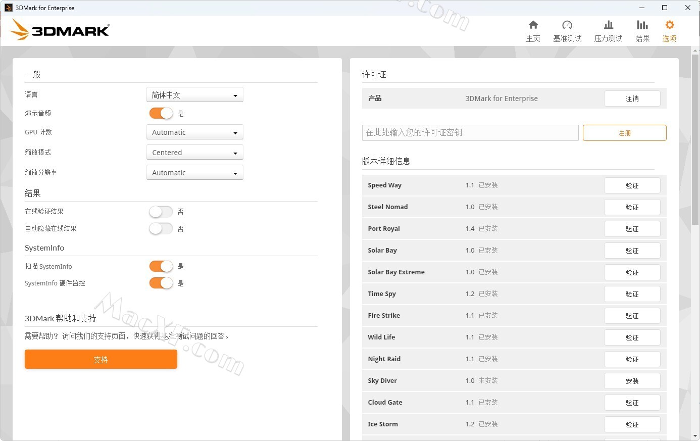 专业显卡测试跑分软件FurMark 3DMark,全球最受欢迎的权威显卡性能测试软件,现已迭代为测试整机综合性能的专业硬件检测工具。第二代3DMark在原有显卡基准测试功能上进行优化,主要提供用于衡量电脑的DirectX 11、DirectX 12接口的基准测试和光追性能测试等在内的多项测试模块和显卡压力测试功能,通过实时渲染高负载的游戏模拟场景动画,检测显卡散热能力,测试GPU和CPU的性能和综合跑分结果。