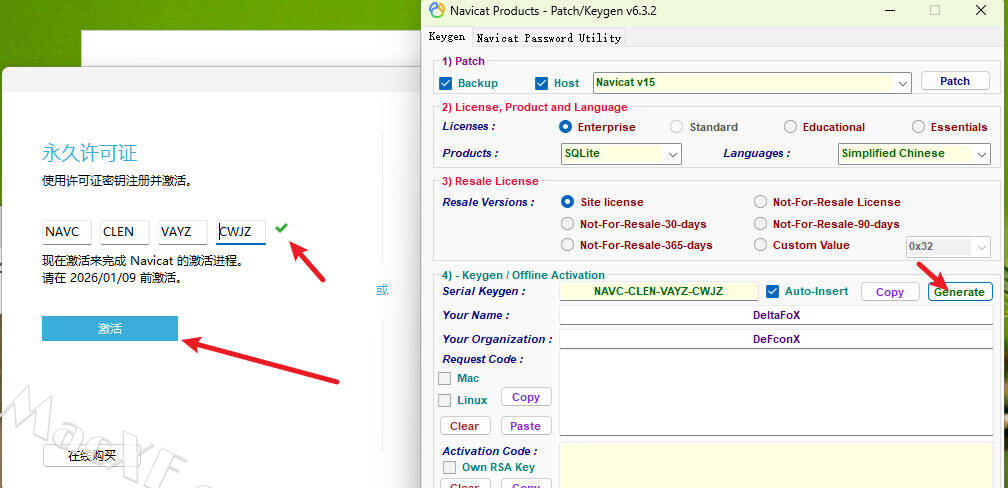 13注册机点击“Generate”,将生产的密钥复制到对应框中,点击"激活";