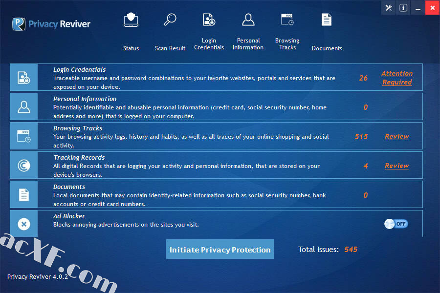 可以扫描您的计算机所存在的隐私问题,并在它们造成任何伤害之前帮助解决它们,它通过揭示敏感信息(如电话号码,电子邮件,物理地址和计算机上存储的信用卡详细信息)来防止身份盗用,您只需点击几下鼠标即可将其删除,并保护您免受黑客,骗子和诈骗分子的侵害