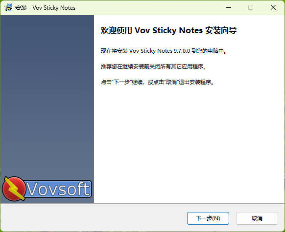 1解压本站下载的安装包,双击运行vov-sticky-notes