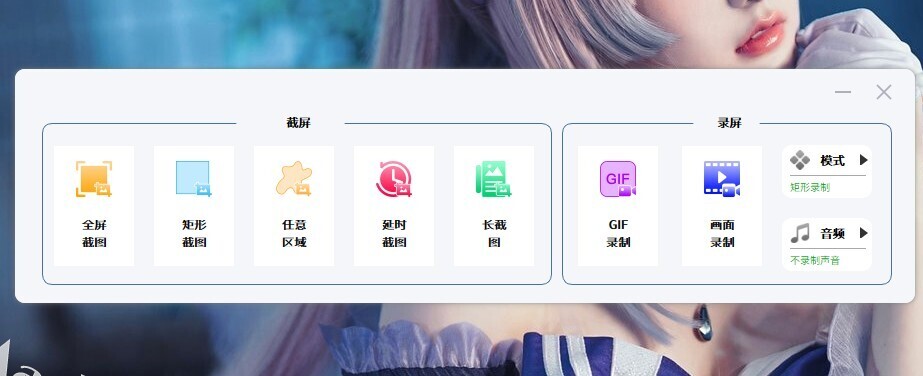 按 ctrl 两次唤出主界面,点击主界面就可以方便地按捕获模式进行截屏和录屏了。