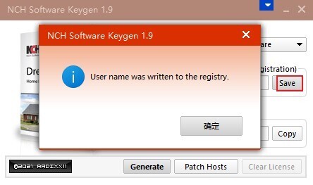3安装完成后,打开NCHSK19文件夹注册机,将产品选择为DreamPlan Home Design Software,输入任意名称点击Save