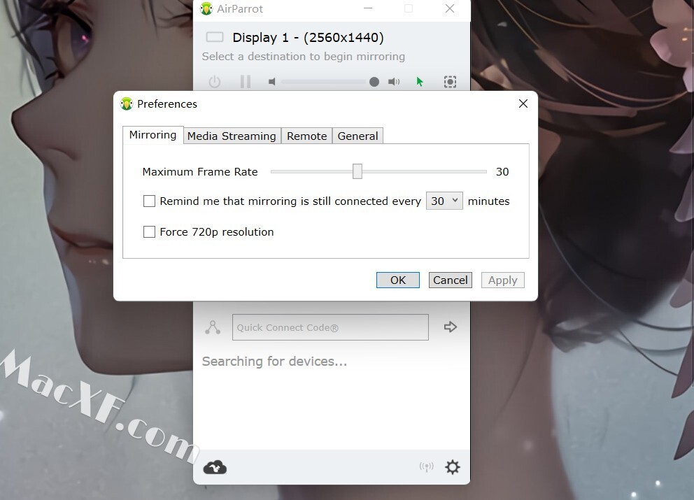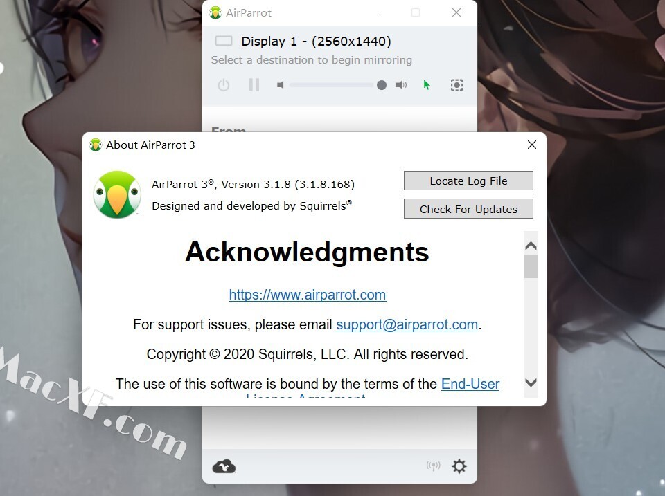 Squirrels AirParrot是一款全新推出的镜像投屏软件,将您的屏幕或流媒体文件无线镜像到各种接收器。AirParrot 可快速找到您网络上可用的媒体接收器,并使用快速连接直接连接到任何运行 Reflector 3 的设备。轻松镜像您的屏幕、扩展您的桌面或流式传输文件以共享视频、音频、演示文稿等等!