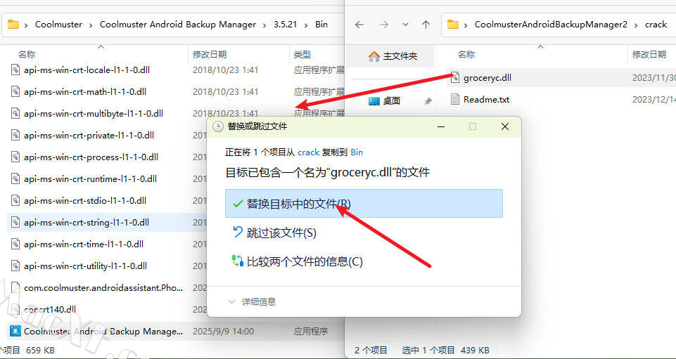 文件复制粘贴到默认安装目录中点击替换,默认安装目录: