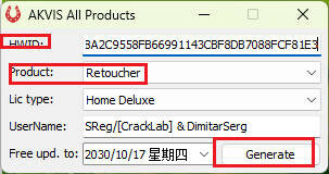 12运行注册机kg.exe,复制HWID到注册机中,选择对应软件,点击Generate生成许可文件