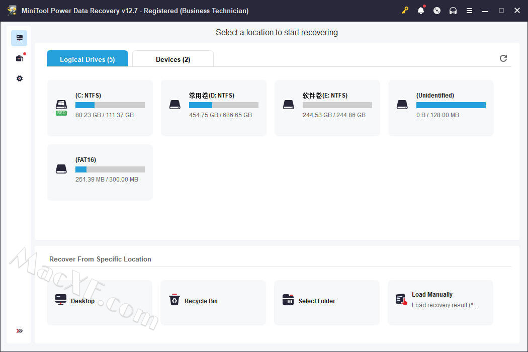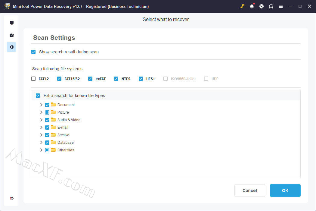 多种文件系统支持:MiniTool Power Data Recovery支持多种文件系统,包括FAT12/16/32、NTFS、HFS+、Ext2/3/4等,可以恢复不同文件系统的数据。