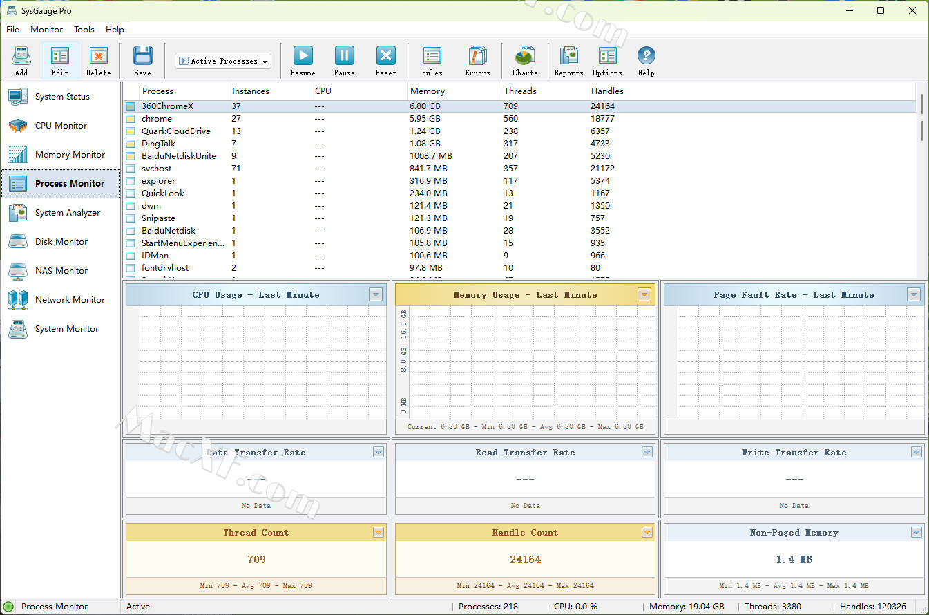 强大的警报功能:当CPU、内存或磁盘使用超过预设阈值时,SysGauge能够发出声音或电子邮件提醒。