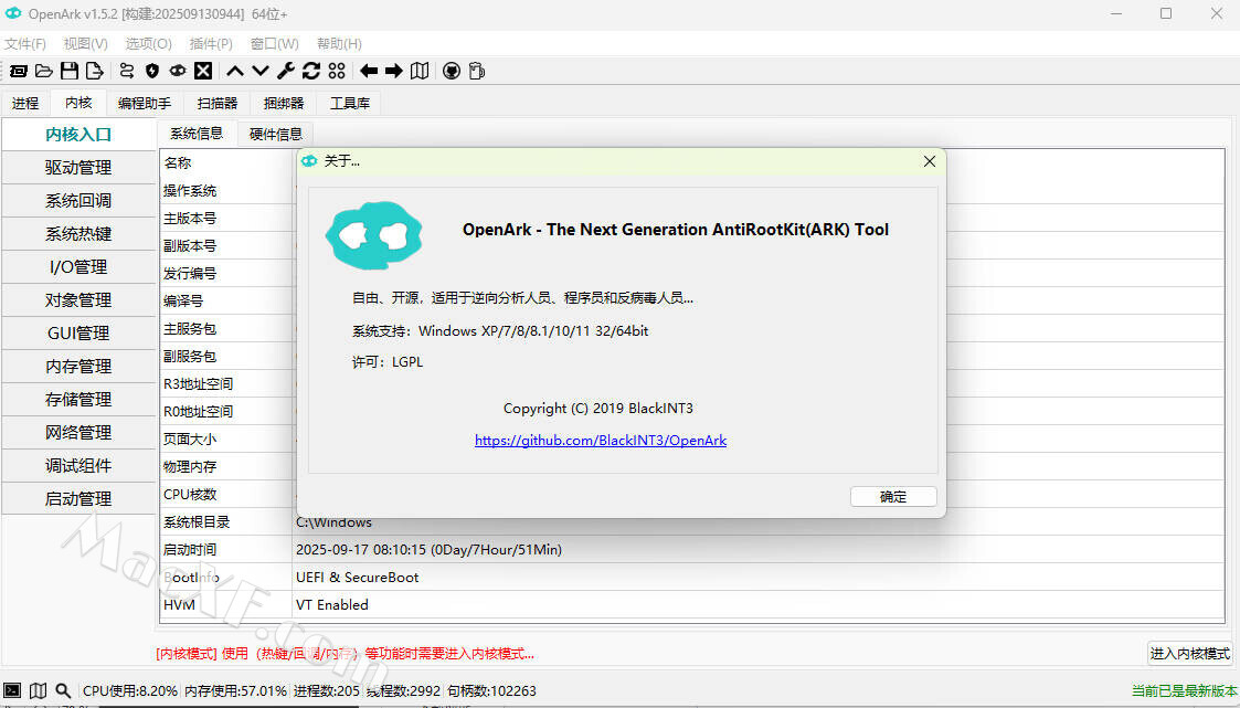 OpenArk是一款功能强大且实用的开源Ark软件,拥有进程、线程、模块、句柄、内存、窗口等板块,非常强大哦。并且,支持中文和英文两种双语言,需要的欢迎下载使用。