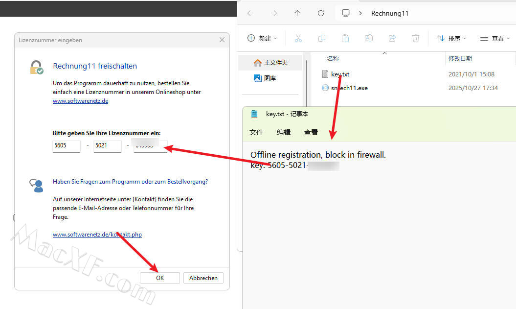 8返回到安装包,双击打开Key文本,将文本里的注册码复制粘贴到软件注册框内,点击OK