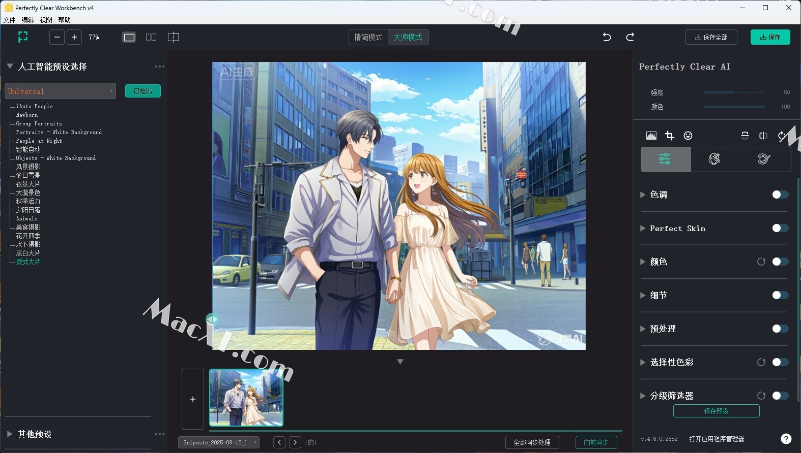 Perfectly Clear Workbench是一款图像处理软件,它提供了一系列的工具和功能,可帮助用户对照片进行自动化修复和优化。与Perfectly Clear Complete不同,Workbench是面向专业摄影师和印刷行业等领域的高级应用程序。