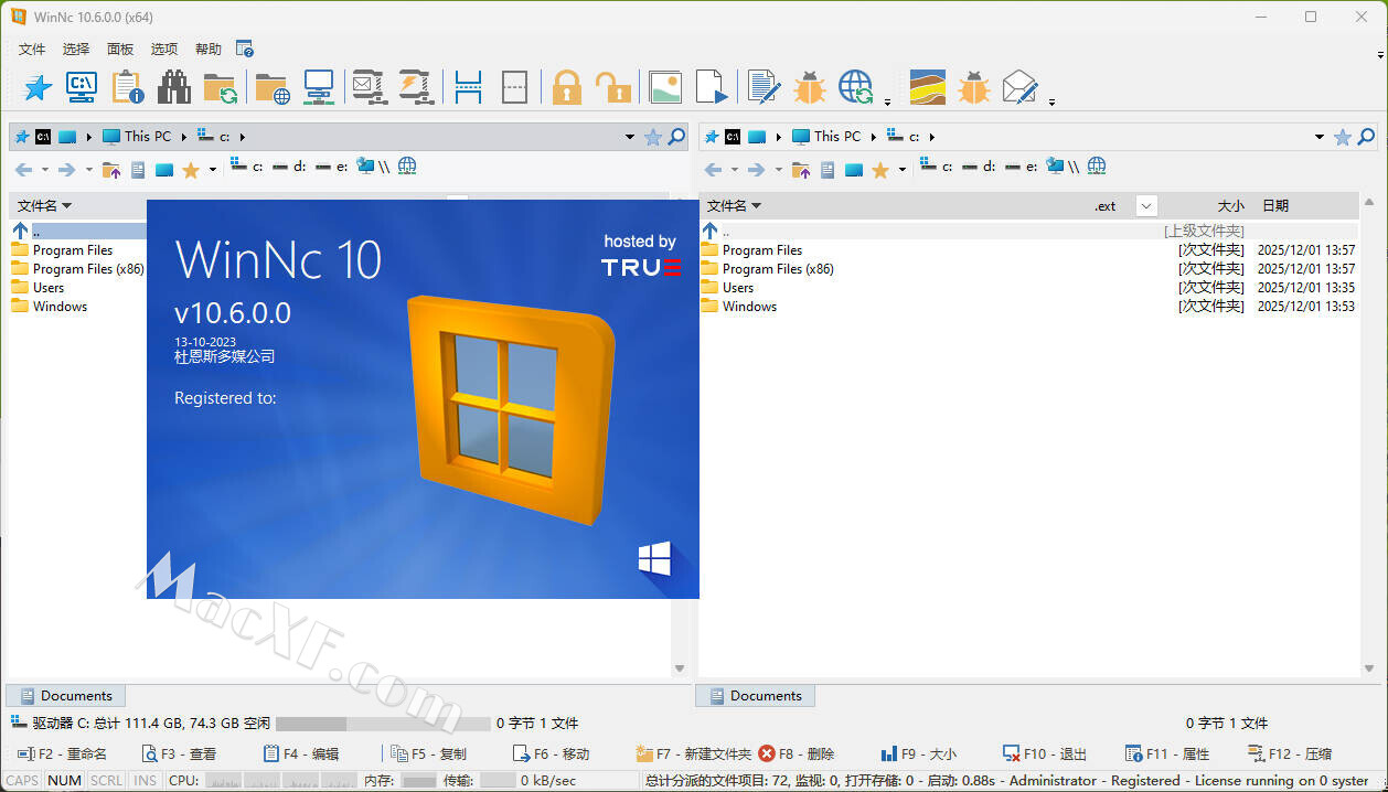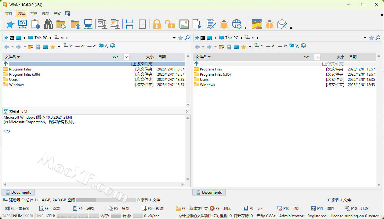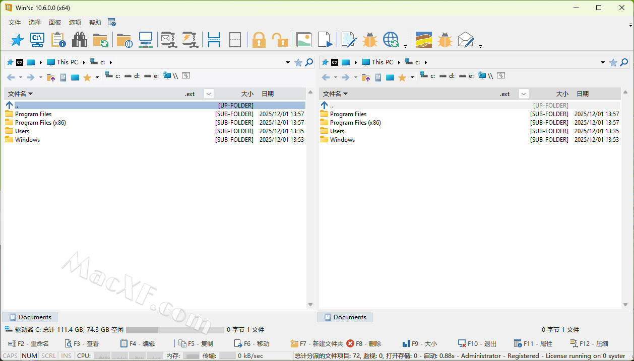 双窗格布局:可以同时显示两个文件夹的内容,并且在它们之间进行复制、移动和重命名等操作。