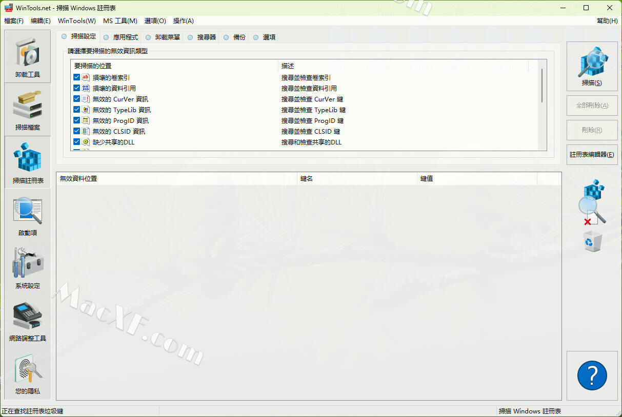 扫描注册表 定期使用MS Windows注册表清理卸载后剩余的未使用的应用程序以及无效引用,这会降低系统速度和系统加载时间。