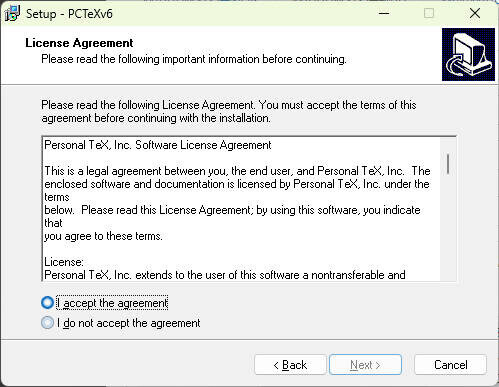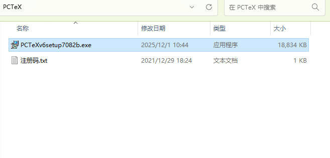 1在本站下载好解压包,然后解压到当前文件夹,双击安装PCTeXv6setup7082b.exe