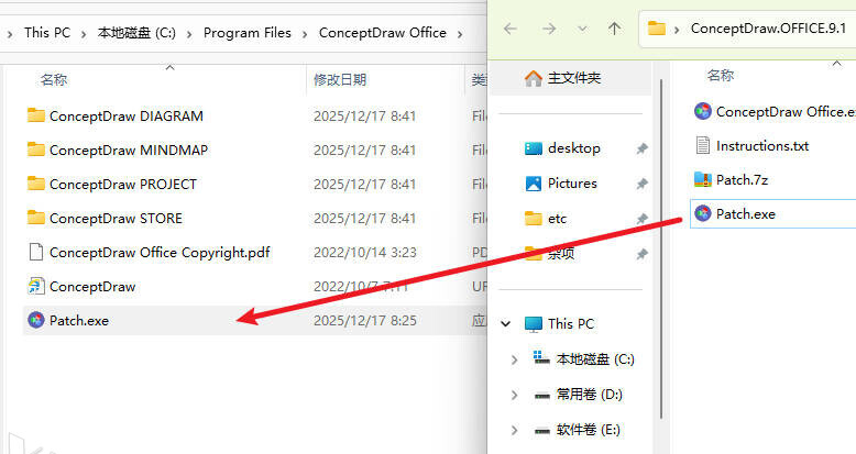 9在桌面找到软件图标右键打开文件所在位置C:\Program Files\ConceptDraw Office,将patch复制过来