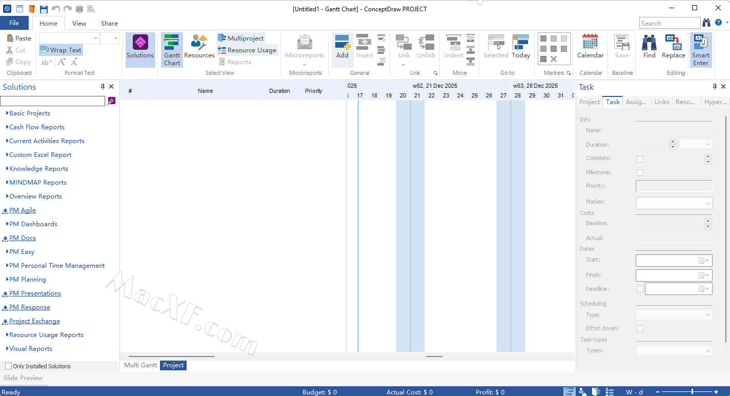 ConceptDraw OFFICE 是一款功能强大的软件套件,专为所有类型的业务经理量身定制,但也旨在全面处理您正在处理的任何业务任务。它包括通过独特的数据交换技术集成的三个软件产品。该套件结合了业务图表、思维导图和项目管理软件。对于提供头脑风暴会议、创建图表、示意图、思维导图、项目计划、仪表板、演示文稿和许多其他业务可视化至关重要。