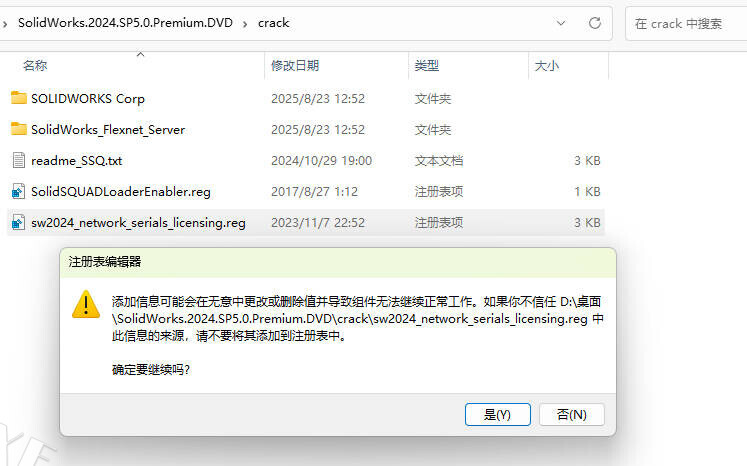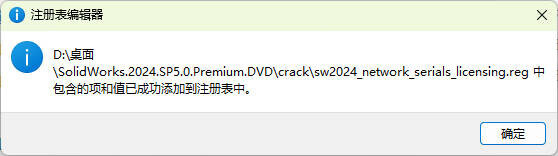 3将下载包中的crack文件夹打开,双击运行 sw_network_serials_licensing.reg