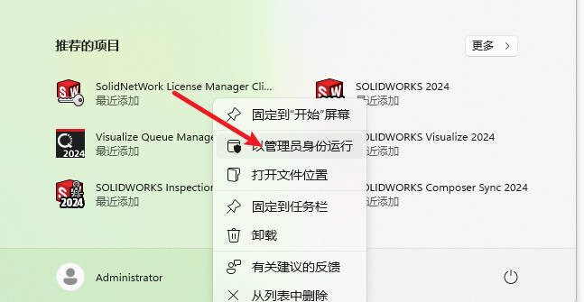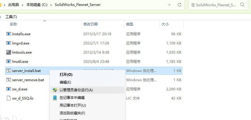 服务器,请以管理员身份运行SolidWorks_Flexnet_Server