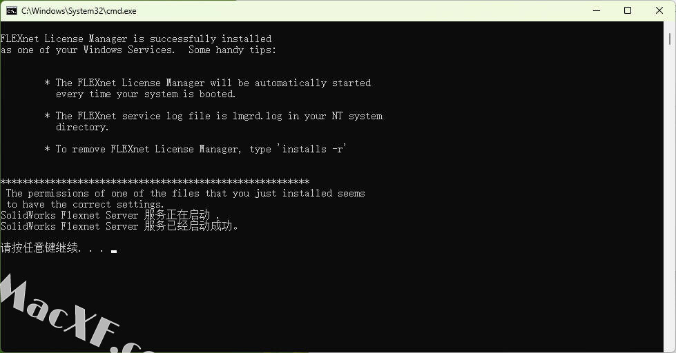 ,等待服务SolidWorks Flexnet Server