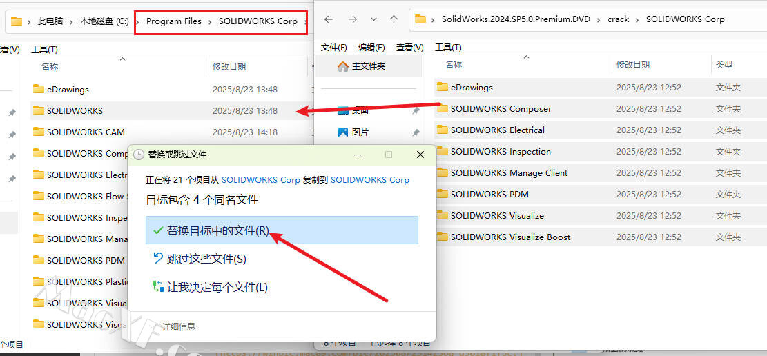 (安装包不同,位置不一样。我的是在eDrawings中,但有的安装包是在SOLIDWORKS crop \ solidworks中,找到并复制进去就行),
