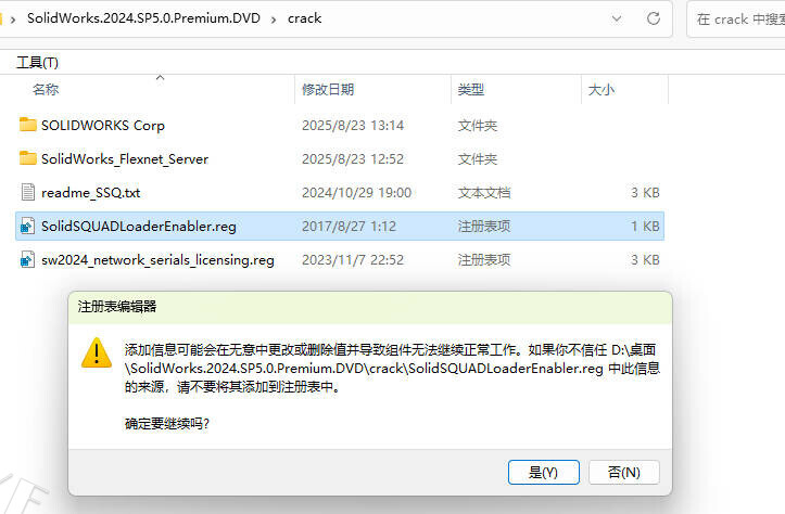 16打开安装包crack文件夹,双击 SolidSQUADLoaderEnabler.reg