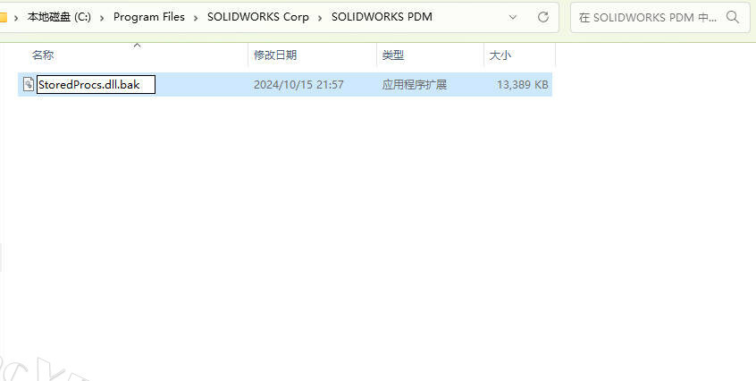 17重命名(如果存在)文件C:\Program Files\SOLIDWORKS Corp\SOLIDWORKS PDM\StoredProcs.dll为StoredProcs.dll.bak