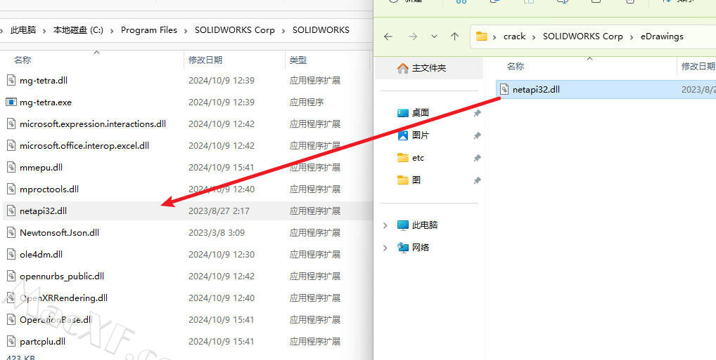 找到安装包中的netapi32.dll并复制到SOLIDWORKS这个文件夹下