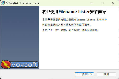 1在本站下载解压,双击filename-lister.exe开始安装,点击确定