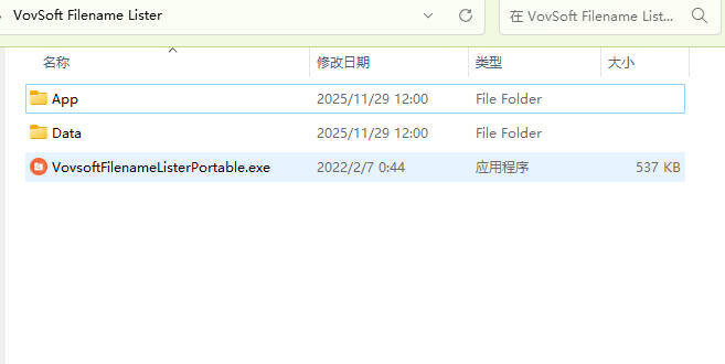 便携版双击VovsoftFilenameListerPortable.exe,打开即可使用