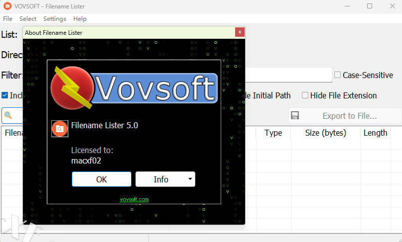 过滤功能:VovSoft Filename Lister提供了强大的过滤功能,使用户能够快速找到所需的文件。用户可以根据文件名或文件大小进行过滤,以缩小搜索范围并更快地找到目标文件。此外,用户还可以选择区分大小写或不区分大小写的过滤方式,以满足不同的需求。