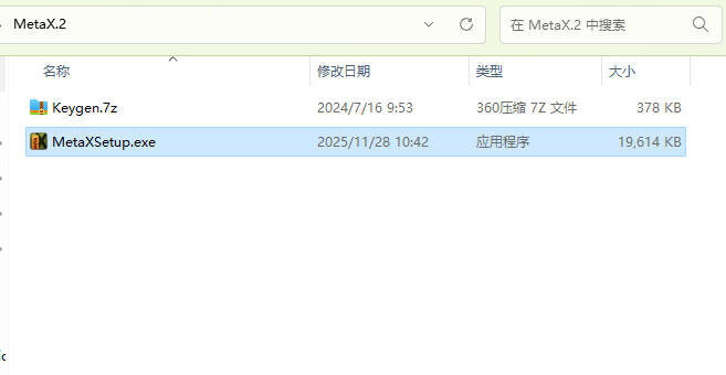 1在本站下载好解压包,然后解压,双击安装MetaXSetup.exe