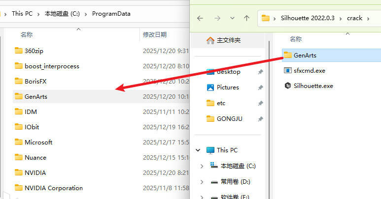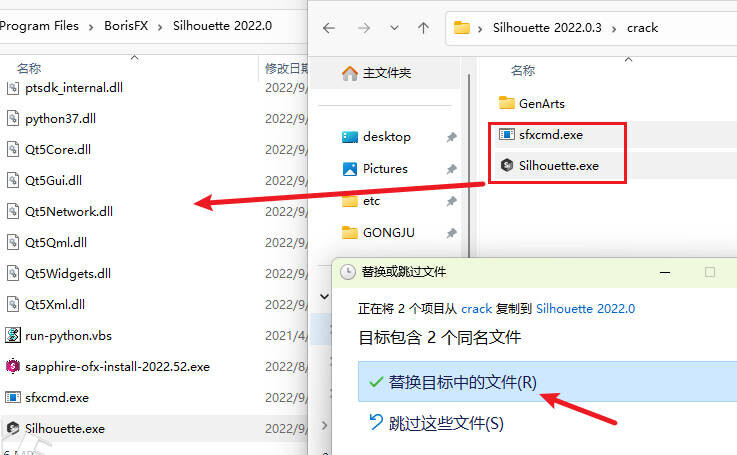 6复制补丁文件夹里的sfxcmd.exe和Silhouette.exe到软件安装路径,默认目录为:C:\Program Files\BorisFX\Silhouette 2022.0