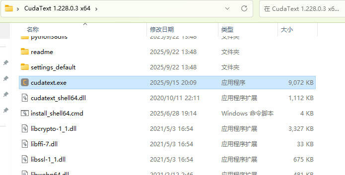 CudaText可用于编辑代码和文本,内置代码突出显示功能适用于编辑程序代码、突出显示大多数编程语言代码、支持代码折叠、视图拆分和正则表达式查找和替换。 CudaText启动速度非常快(In tel Core i3 3Hz上约30个插件,0.5秒)。 CudaText可以通过Python插件(插件、链接器、代码树解析器、外部工具)进行扩展。