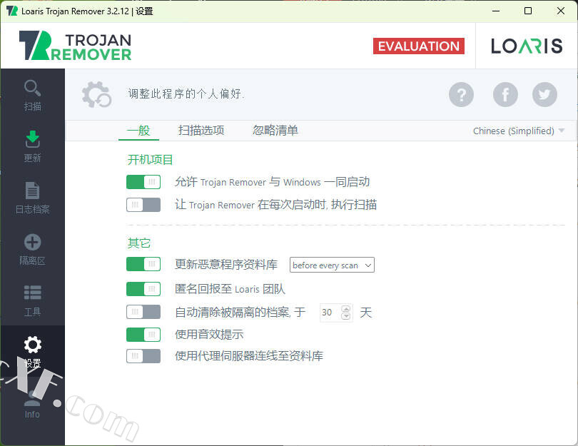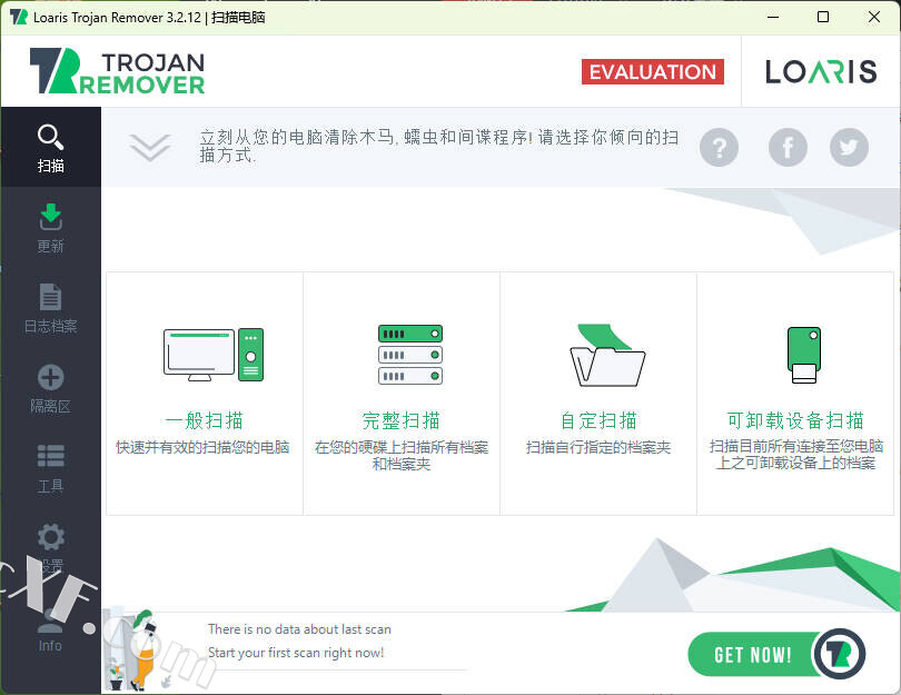 Loaris Trojan Remover是一款强大的清除特洛伊木马工具,程序可以帮助你扫描并清除系统中存在的各种木马病毒等。支持包括标准扫描。定制扫描和ActiveX三种扫描方式,内置的病毒库包含了10多万种病毒木马资料,并支持在线升级功能。
