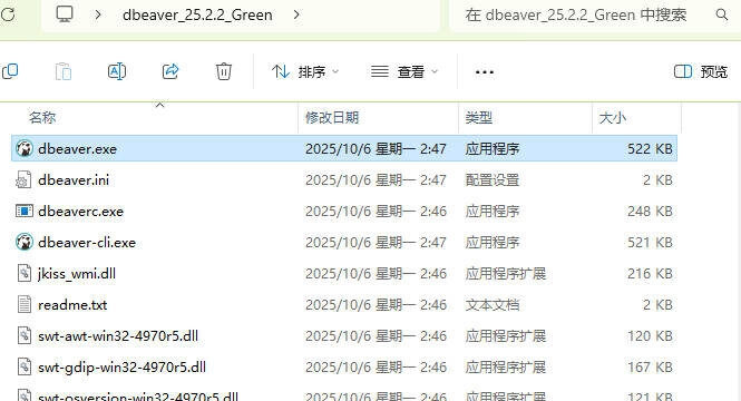 绿色版下载解压后双击dbeaver.exe打开即可使用