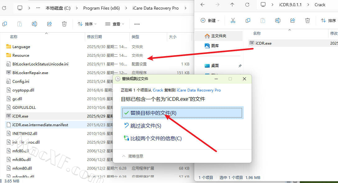 10返回安装包将破解文件夹内容复制到安装目录下点击替换