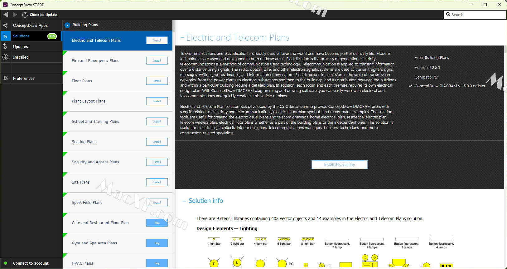 行业解决方案扩展:通过ConceptDraw Solution Park提供建筑、工程、IT等领域的专用插件,包含预设计形状库、行业符号和快速入门模板,用户可下载免费或付费资源快速创建专业图表。