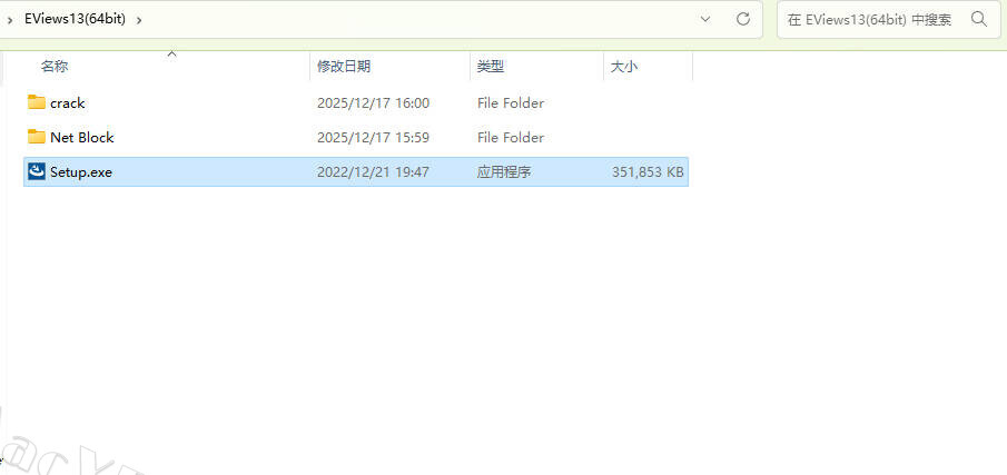 13打开安装包解压后的EViews13(64bit),双击打开Net Block文件夹,运行Fabx64