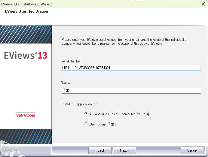 5输入Serial Number:【11E111122C3B30F587654321】,输入Name【苹果】,点击Next。