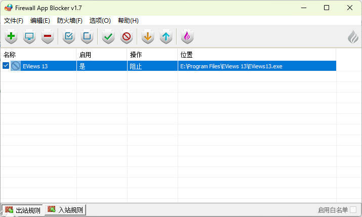 14点击出站规则,将桌面EViews 13图标拖到软件中。