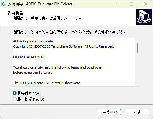 1在本站下载解压文件,打开4DDiG Duplicate File Deleter.exe文件安装