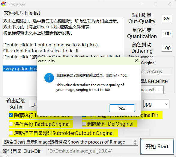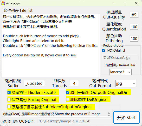 Rimage_Gui是rimage的gui版,可以批量选中图片并进行格式调整或者压缩,压缩后图片体积疯狂缩小,同时质量变化肉眼基本不可见;免费开源的图片处理GUI工具,支持批量调整格式、压缩图片,压缩效果显著且质量几乎无损。支持双语,自动更新,拖拽添加图片,隐藏运行。含GNU套件dll,避免运行库缺失。