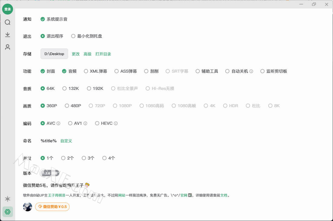 一款简洁好用的B站视频下载工具。支持由UP主上传的单集,多集以及相关封面,弹幕,字幕,音乐,刮削等等。支持任意粒度批量组合,登录后最高支持到1080P,大会员可获取所有画质及音质。